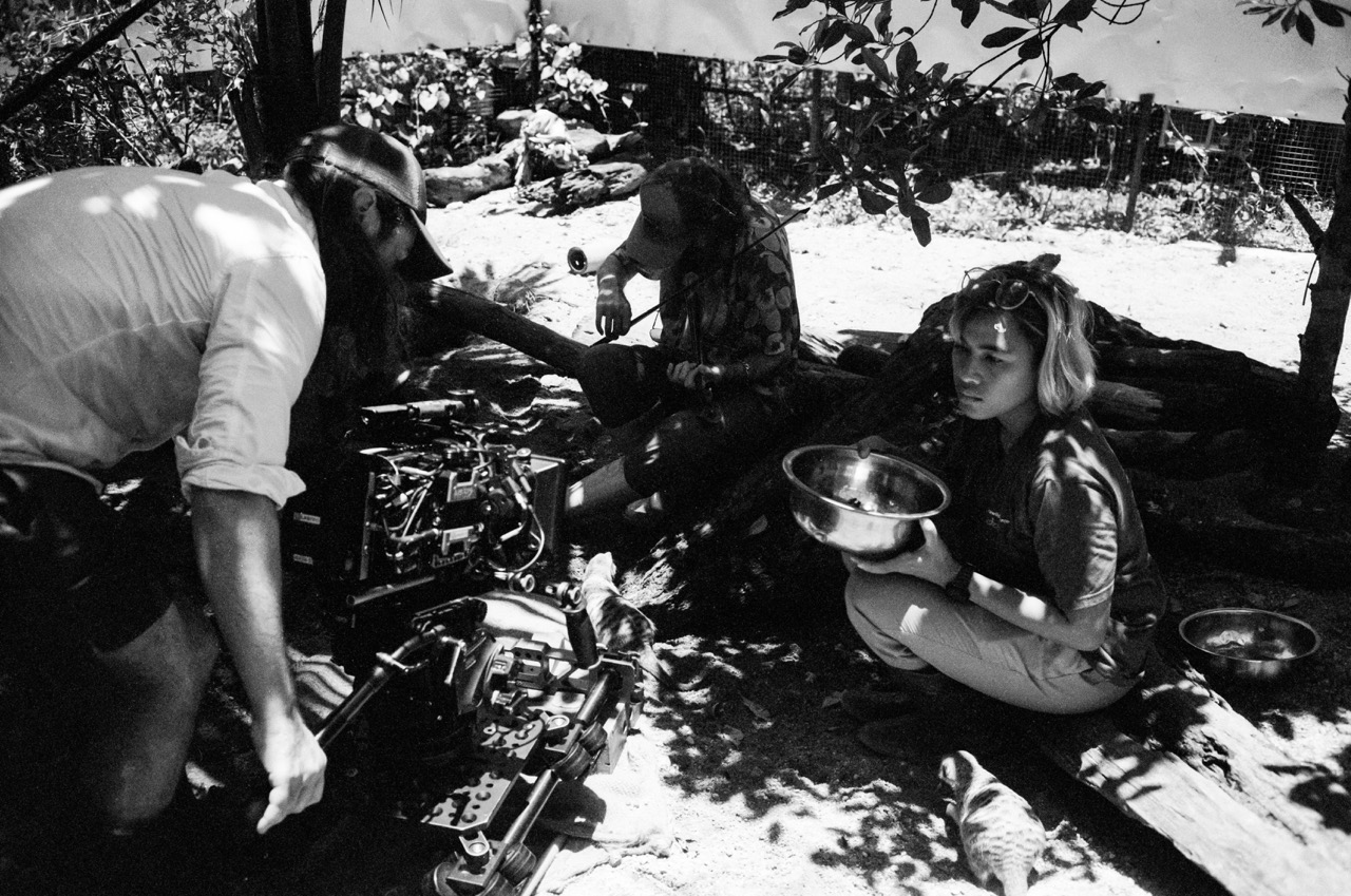 After a few minutes, Ellis re-enters, this time with McMicking and den Haas’s husband, “animal whisperer” Dano, whose presence set- tles the air. With the new dynamic, Rina calms and within minutes she and Ellis share each other’s space, until Kurzel calls cut.