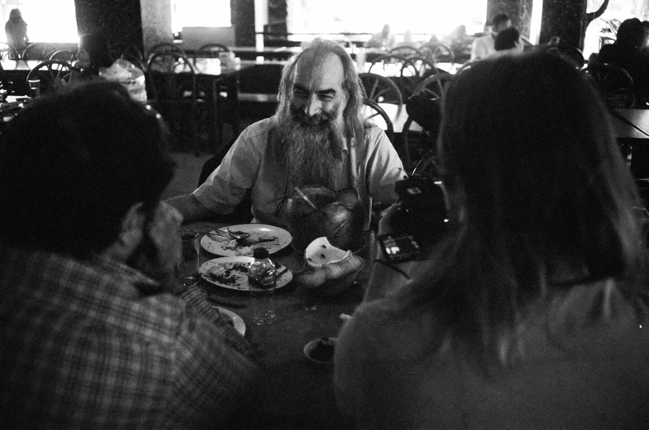 It is just after 7am at the Grand Elty Krakatoa hotel when I spot Ellis at the breakfast buffet. He is wearing thongs, Speedo brand shorts, and a faded blue T-shirt that says “Warren Ellis” above the year of his birth, “1965”, almost obscured by his grey and black beard. Ellis bypasses the papaya, honeydew, and watermelon juices to wrestle with an uncooperative urn of hot water as neatly dressed hotel staff watch on, politely attentive.
