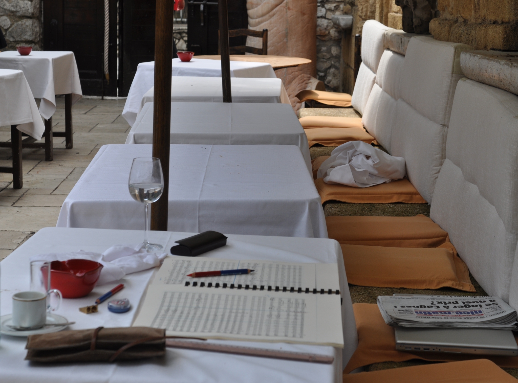 I’m shown to my room, where a small shuttered window looks down on the courtyard. On the walls: a Matisse, a Dufy. And above the bed, a Picasso. Naturally. It’s a work on paper from 1961, showing a loose, clownish figure rendered in a few confident lines. It stares back at me, bemused, as if to ask what I’m doing in its room.