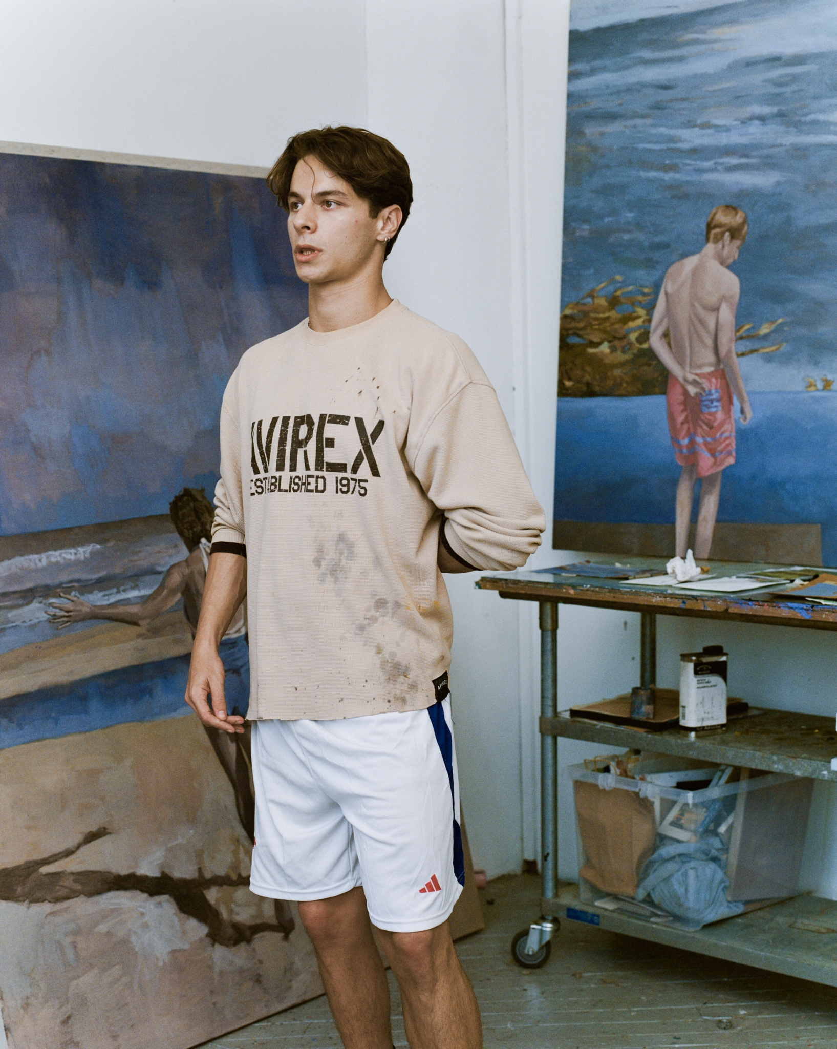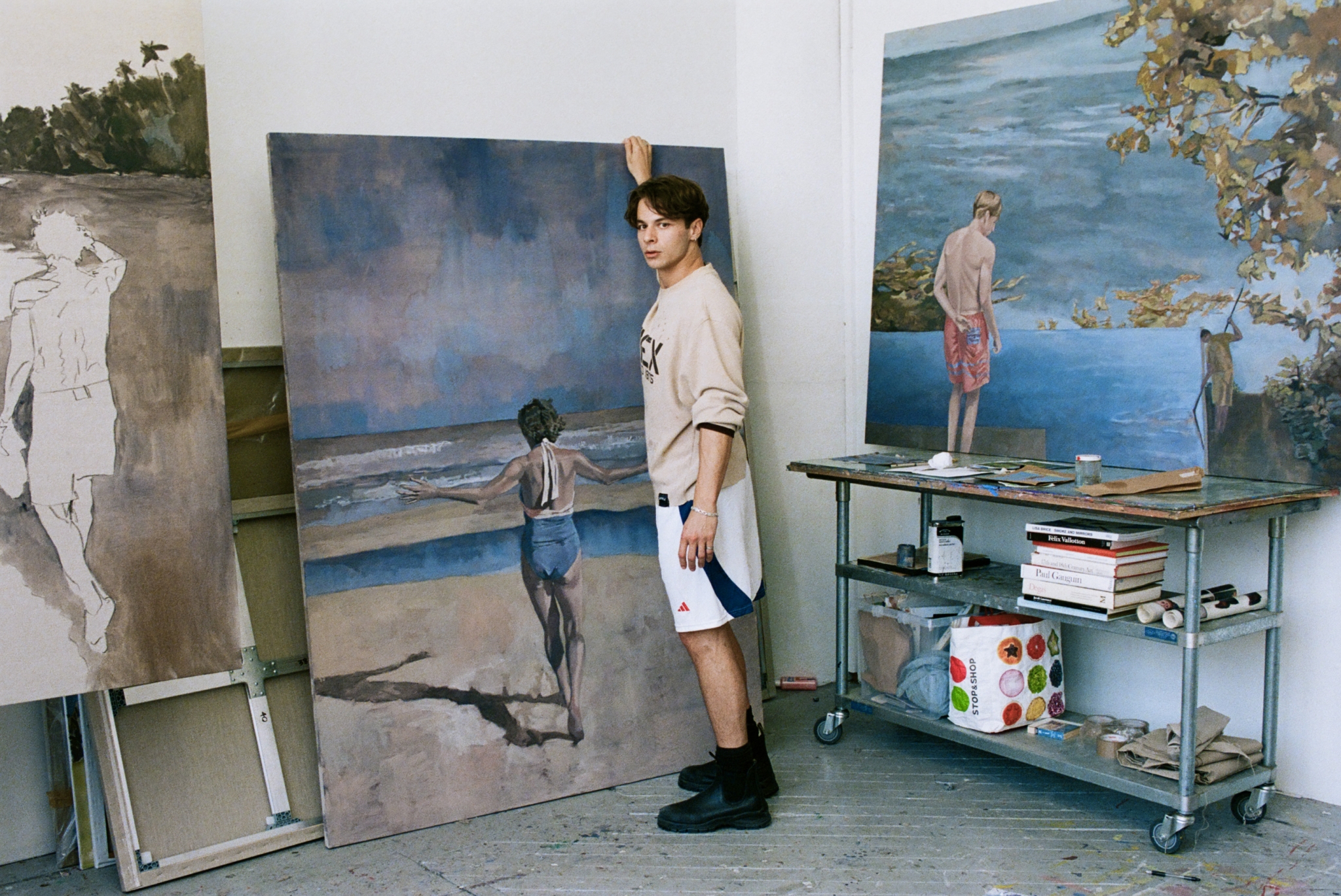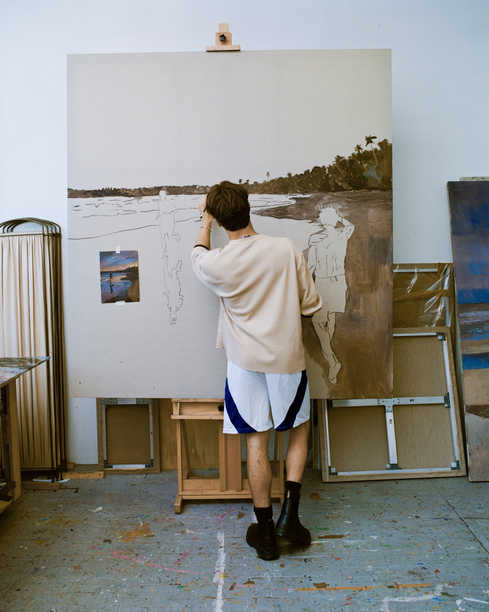 “My artistic evolution is about getting close to my own body.” Based in Brooklyn, the 26-year-old painter Emil Sands—known for his oddly dark coastal scenes—has created an artistic language based on embodiment and vulnerability.