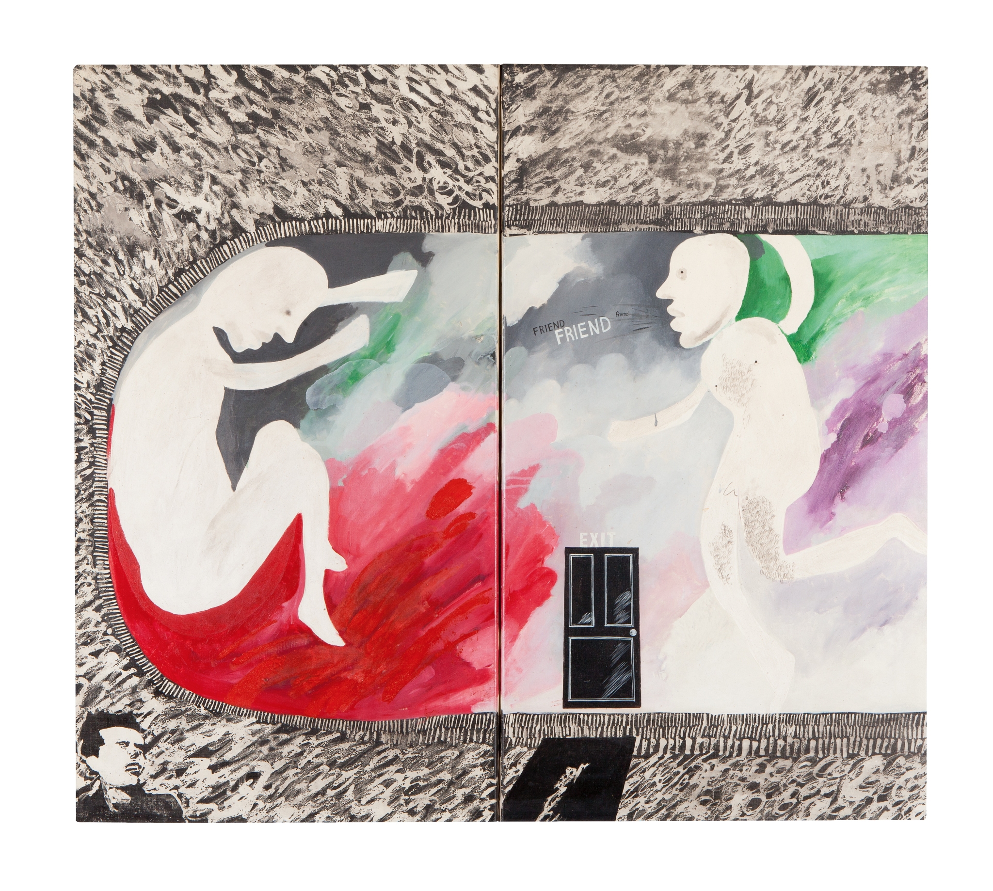 David Hockney, “Composition (Thrust)”, 1960. Mixed media on board. 46 1/2 x 35”. © Royal College of Art. Royal College of Art, London