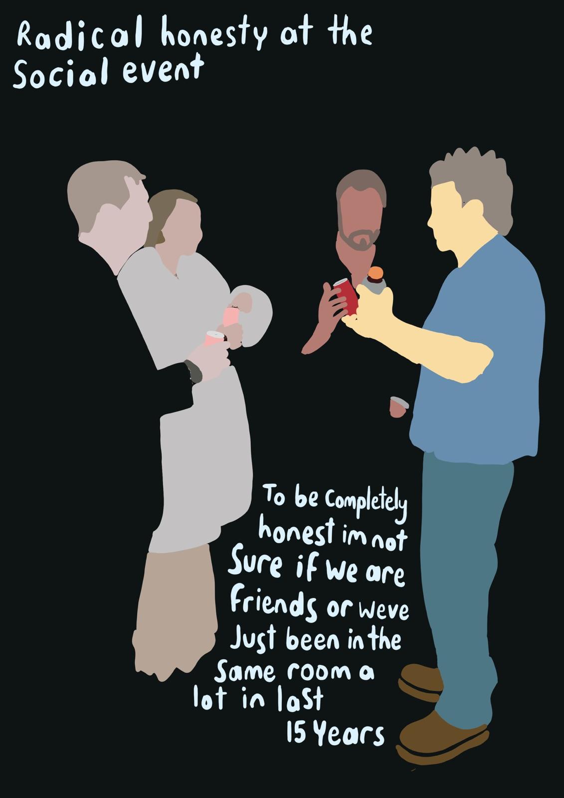 Radical Honesty is a series of drawings that I’ve done. When it’s out there, it looks as though I’m saying: “I’m radically honest, and so should you be.” I’m actually taking the piss. The Radical Honesty series of drawings that I’ve done are things that I think in my head that I would never say out loud. So my radical honesty isn’t that radical. Isn’t that radically honest?