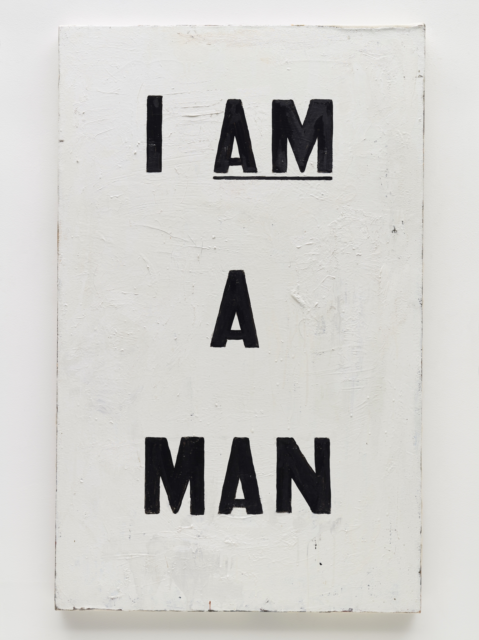 Glenn Ligon, Untitled (I Am a Man) (1988), oil and enamel on canvas, 101.6 x 63.5 cm / 40 x 25 inches; Collection of National Gallery of Art, Washington D.C. Copyright Glenn Ligon. Courtesy of the artist, Hauser & Wirth, and Thomas Dane Gallery; Photographer credit: Ron Amstutz